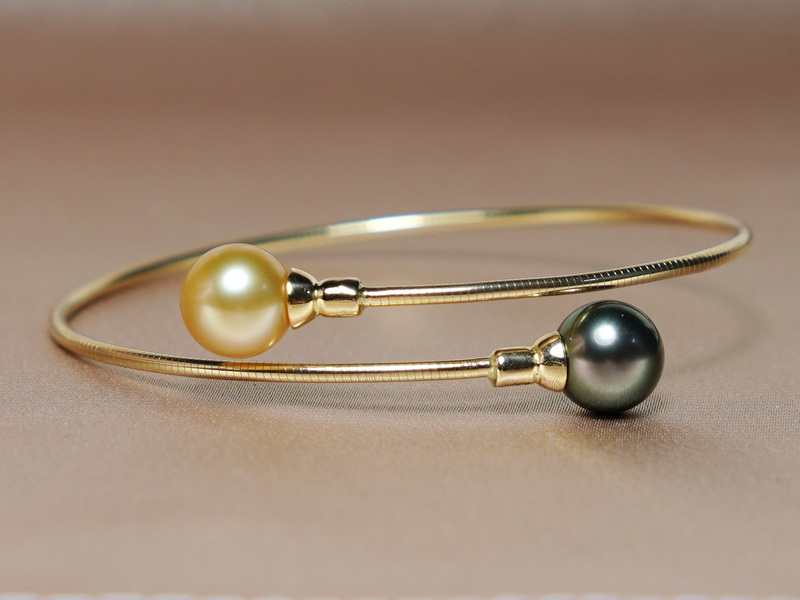 Elegantný perlový náramok GTPB100yB vyrobený zo žltého zlata rýdzosti 750/1000, jednej zlatožltej juhomorskej perly a jednej tahitskej perly. Konštrukcia náramku je pružná a prispôsobí sa každému bežnému obvodu zápästia, čo je možné vďaka titánovému vláknu vo vnútri konštrukcie. Hrúbka konštrukcie náramku je 1,8 mm, dĺžka 22 cm s prekrytím koncov (18 cm obvod), ktorá sa podľa potreby môže roztiahnuť (zmenšuje sa prekrytie koncov). Celková hmotnosť náramku bez perál je cca 5,60 gramu, z toho 1 gram titánové vlákno. Perly najvyššej kvality AAA majú okrúhly tvar, hladký povrch a vysoký lesk. Veľkosť perál môžete zvoliť od 9 do 11 mm, môžete skombinovať aj veľkosti perál. Po dohode je takisto možné osadiť perly v inej kvalite s primeraným znížením ceny. Náramok posielame v darčekovom balení spolu s certifikátom pravosti a v rámci Česka a Slovenska máte dopravu zdarma.