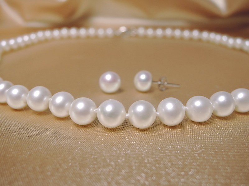 Perlový set NRSET6570AAAwW pozostáva z perlového náhrdelníka dĺžky 45 cm a perlových náušníc z bielych riečnych perál v kombinácii so striebrom. Na náhrdelník sú použité takmer okrúhle perly najvyššej povrchovej kvality AAA veľkosti 6,5-7 mm. Majú nádherný vysoký lesk a hladký povrch s možnosťou drobných nedokonalostí v rámci uvedenej kvality. Medzi každou perlou náhrdelníka sú naviazané uzlíky kvôli krajšiemu vzhľadu a bezpečnosti, navlečené sú na pevnej hodvábnej niti. Perlový náhrdelník je ukončený karabínkou zo striebra rýdzosti 925/1000. Perlové náušnice sú vyrobené z pologuľatých bielych riečnych perál veľkosti 7 mm s povrchovou kvalitou AAA a kovaní zo striebra rýdzosti 925/1000 s hmotnosťou 0,5 gramu. Na požiadanie vyrobíme náhrdelník v iných dĺžkach a náušnice vymeníme za iný typ s primeraným zvýšením alebo znížením ceny. K súprave šperkov z riečnych perál dostanete zdarma certifikát pravosti, darčekovú kazetu a v rámci Česka a Slovenska máte dopravu zdarma.