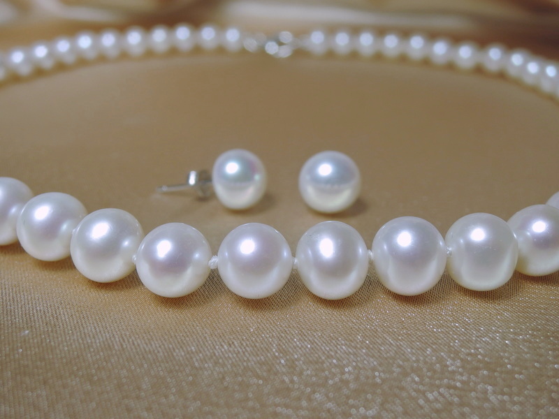 Perlový set NRSET7580AA+wH pozostáva z perlového náhrdelníka dĺžky 45 cm a perlových náušníc z bielych riečnych perál v kombinácii so striebrom. Na náhrdelník sú použité takmer okrúhle perly povrchovej kvality AA+ veľkosti 7,5-8 mm. Majú nádherný vysoký lesk a hladký povrch s možnosťou drobných nedokonalostí v rámci uvedenej kvality. Medzi každou perlou náhrdelníka sú naviazané uzlíky kvôli krajšiemu vzhľadu a bezpečnosti, navlečené sú na pevnej hodvábnej niti. Perlový náhrdelník je ukončený karabínkou zo striebra rýdzosti 925/1000. Perlové náušnice sú vyrobené z pologuľatých bielych riečnych perál veľkosti 8 mm s povrchovou kvalitou AAA a kovaní zo striebra rýdzosti 925/1000 s hmotnosťou 0,5 gramu. Na požiadanie vyrobíme náhrdelník v iných dĺžkach a náušnice vymeníme za iný typ s primeraným zvýšením alebo znížením ceny. K súprave šperkov z riečnych perál dostanete zdarma certifikát pravosti, darčekovú kazetu a v rámci Česka a Slovenska máte dopravu zdarma.