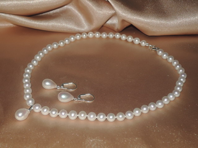 Nádherný elegantný set šperkov obsahuje náhrdelník RSND7580AAAwQ a náušnice zo sladkovodných bielych perál veľkosti 7,5 - 8 mm a jednej perly tvaru slzy veľkosti cca 10 x 13 mm. Na šperky sú použité okrúhle perly v kvalite AAA s hladkým povrchom a veľmi vysokým leskom. Chybičky na povrchu perál sa nevyskytujú vôbec, alebo len výnimočne. Náhrdelník je viazaný na pevnej hodvábnej niti a medzi každou perlou sú uzlíky kvôli krajšiemu vzhľadu a bezpečnosti. Má dĺžku cca 45 cm a ukončený je karabínou zo striebra rýdzosti 925/1000. Na požiadanie vyrobíme náhrdelník v iných dĺžkach, prípadne s iným uzáverom (zlatým) s primeraným zvýšením, alebo znížením ceny. Kovania náušníc sú taktiež vyrobené zo striebra rýdzosti 925/1000. Náušnice je možné vymeniť za iné podľa ponuky v e-shope za príplatok. K tomuto setu šperkov môžeme vyrobiť aj náramok podľa požiadavky. Šperky sú vhodné na vzácne príležitosti.Šperky posielame v darčekovom balení spolu s certifikátom pravosti a v rámci Česka a Slovenska máte dopravu zdarma.