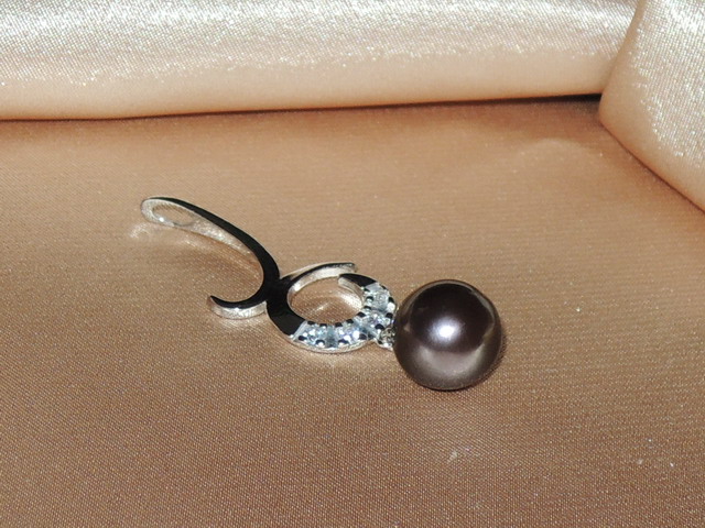 Luxusný prívesok zo setu šperkov BC03SS-B je kombináciou kovania zo striebra, zirkónov a čiernej sladkovodnej perly. Perla môže mať veľkosť 9 alebo 10 mm, je kvality AAA s hladkým povrchom a vysokým leskom. Kovanie prívesku je zo striebra rýdzosti 925/1000 kombinované so zirkónmi veľkosti 2,25 mm. Kovanie je povrchovo upravené rhódiom a má vzhľad bieleho zlata. Celková hmotnosť striebra prívesku je cca 1,8 gramu. Celková dĺžka prívesku s perlou je cca 48 mm. Tento prívesok je jeden z luxusných šperkov vlastného designu "BCstyle". Šperky posielame v darčekovom balení s certifikátom pravosti.