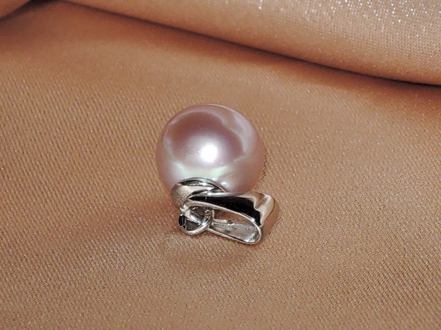Prívesok RPP001lM vyrobený z fialovoružovej sladkovodnej perly kvality AAA s hladkým povrchom a vysokým leskom a kovania z bieleho zlata rýdzosti 585/1000 hmotnosti cca 0,4 gramu. Je možné si vybrať perlu veľkosti 8 - 10mm. Na fotografii je perla veľkosti 9,5 mm. Šperky posielame s certifikátom pravosti v darčekovom balení.