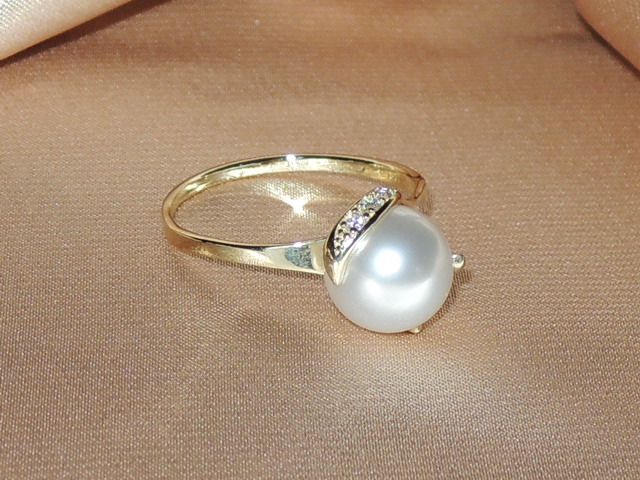 Luxusný perlový prsteň zo setu šperkov BC05YS-W je kombináciou kovania zo zlata, briliantov a juhomorskej perly. Perla najvyššej kvality AAA veľkosti cca 9,5 mm má okrúhly tvar, hladký povrch a veľmi vysoký lesk. Kovanie prsteňa je vyrobené zo žltého zlata rýdzosti 585/1000 (14kt.) kombinované s briliantmi veľkosti cca 1,5mm/0,015ct. Brilianty sú v kvalite VVS/G,H. Celková hmotnosť zlata prsteňa je cca 1,8 gramu pre veľkosť prsteňa č.57. Štandardná veľkosť prsteňa je č.57-menšia zmena veľkosti je možná po dohode. Tento prsteň je jeden z luxusných šperkov vlastného designu "BCstyle". Šperk splní očakávania náročných klientov, ktorí hľadajú najvyššiu kvalitu v spojení s jedinečnosťou šperku, ktorý nemožno vidieť v ponukách iných predajní. Prsteň dostanete s certifikátom pravosti v luxusnej darčekovej kazete a v rámci Česka a Slovenska vám ho doručíme zdarma.