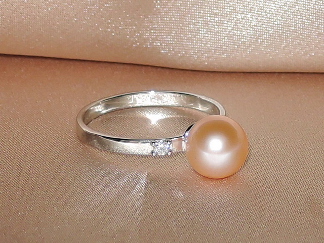 Prsteň s perlou vyrobený z pravej broskyňovoružovej sladkovodnej perly a kovania zo striebra rýdzosti 925/1000. Perla kvality AAA má okrúhly tvar, hladký povrch a veľmi vysoký lesk. Veľkosť perly môžete zvoliť od 8 do 10 mm. Na fotografii je perla veľkosti 9 mm. Hmotnosť kovania je cca 1,2 g pre prsteň veľkosti č.56. Menšia úprava veľkosti prsteňa možná po vzájomnej dohode. Kovanie prsteňa je kombinované s dvomi zirkónmi veľkosti 2mm. Na požiadanie k prsteňu doporučíme náušnice a prívesok alebo náhrdelník ako kombináciu do setu šperkov. Prsteň posielame v darčekovej krabičke.