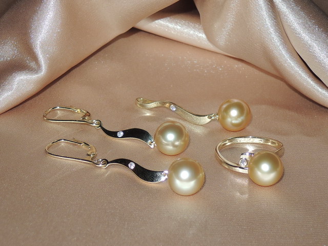 Luxusný set perlových šperkov pozostáva z náušníc BC04YE-G, prívesku BC04YP-G a prsteňa BC04YR-G. Jednotlivé šperky sú kombináciou kovania zo zlata, zirkónov alebo briliantov a zlatožltých juhomorských perál. Perly najvyššej kvality AAA majú okrúhly tvar, hladký povrch a vysoký lesk. Veľkosť perál môžete zvoliť od 9 do 12 mm. Kovania sú vyrobené zo žltého zlata rýdzosti 585/1000 (14kt.) kombinované so zirkónmi alebo briliantmi veľkosti cca 2mm/0,033ct pre náušnice a prívesok a cca 1,75mm/0,02ct pre prsteň. Tento set je jeden z luxusných šperkov vlastného designu "BCstyle". Šperky splnia očakávania náročných klientov, ktorí hľadajú najvyššiu kvalitu v spojení s jedinečnosťou šperku, ktorý nemožno vidieť v ponukách iných predajní. Šperky posielame v darčekovom balení spolu s certifikátom pravosti a v rámci Česka a Slovenska máte dopravu zdarma.
