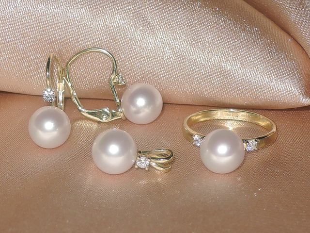 Šperky s perlami BC140YS-A sú vyrobené z kovaní zo 14 kt. žltého zlata kombinovaného so zirkónmi alebo briliantmi a bielych japonských morských akoya perál najvyššej kvality AAA. Popis jednotlivých šperkov nájdete tu: náušnice BC022YE-A, prívesok BC025YP-A, prsteň BC027YR-A. Jednotlivé šperky je možné zamieňať za iné druhy, prípadne voliť rôzne veľkosti perál pre rôzne šperky a tak tvoriť rôzne kombinácie vzhľadu aj ceny celého setu šperkov. O možnostiach, ktoré nie sú dané vo výbere sa informujte vopred. Šperky dostanete v darčekovej kazete s certifikátom pravosti a v rámci Česka a Slovenska vám ich doručíme zdarma.