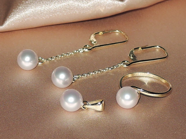 Šperky s perlami BC160YS-A sú vyrobené z kovaní zo 14 kt. žltého zlata a bielych japonských morských akoya perál najvyššej kvality AAA. Popis jednotlivých šperkov nájdete tu: náušnice BC020YE-A, prívesok AP010C, prsteň BC028YR-A. Jednotlivé šperky je možné zamieňať za iné druhy, prípadne voliť rôzne veľkosti perál pre rôzne šperky a tak tvoriť rôzne kombinácie vzhľadu aj ceny celého setu šperkov. O možnostiach, ktoré nie sú dané vo výbere sa informujte vopred. Šperky dostanete v darčekovej kazete s certifikátom pravosti a v rámci Česka a Slovenska vám ich doručíme zdarma.