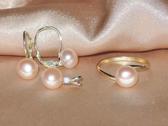 Šperky s perlami BC190YBS-P sú vyrobené z kovaní zo žltého zlata rýdzosti 585/1000 (14kt.) a pravých broskyňovoružových sladkovodných perál. Čiastočne sploštené perly s povrchovou kvalitou AAA majú hladký povrch a veľmi vysoký lesk. Popis jednotlivých šperkov nájdete tu: náušnice DS701YBE-P, prívesok BC026YBP-P, prsteň BC028YBR-P. Jednotlivé šperky je možné zamieňať za iné druhy, prípadne voliť rôzne veľkosti perál pre rôzne šperky a tak tvoriť rôzne kombinácie vzhľadu aj ceny celého setu šperkov. O možnostiach, ktoré nie sú dané vo výbere sa informujte vopred. Šperky dostanete v darčekovej kazete a v rámci Česka a Slovenska vám ich doručíme zdarma s certifikátom pravosti.