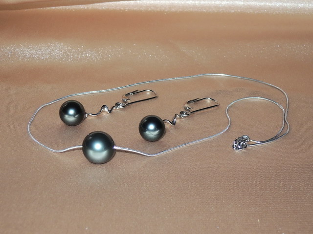 Luxusný set šperkov z tahitských perál TASET500C zložený z náušníc TE400AAAC a prívesku TAP100C Perly najvyššej kvality AAA majú okrúhly tvar, hladký povrch a veľmi vysoký lesk. Kovania perlových šperkov sú vyrobené z bieleho zlata rýdzosti 585/1000 (14kt.). Retiazka prívesku má hmotnosť 2,50 gramu a dĺžku 40 cm. Náušnice majú dĺžku 50 mm vrátane patentu a perly. Kovania náušníc majú hmotnosť cca 2,3 gramu. Pre zmenu veľkosti perál, dĺžku retiazky, alebo farby zlata nás neváhajte kontaktovať. Šperky sú vhodné na vzácne príležitosti. Tieto šperky s magickými tahitskými perlami dostanete s certifikátom pravosti v darčekovej kazete a v rámci Česka a Slovenska Vám ich doručíme zdarma.