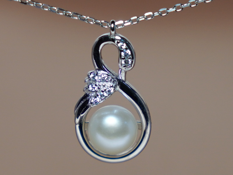 Perlový náhrdelník PN555B je vyrobený zo striebornej retiazky a prívesku rýdzosti 925/1000 s motívom labute so zirkónmi a bielou sladkovodnou perlou.