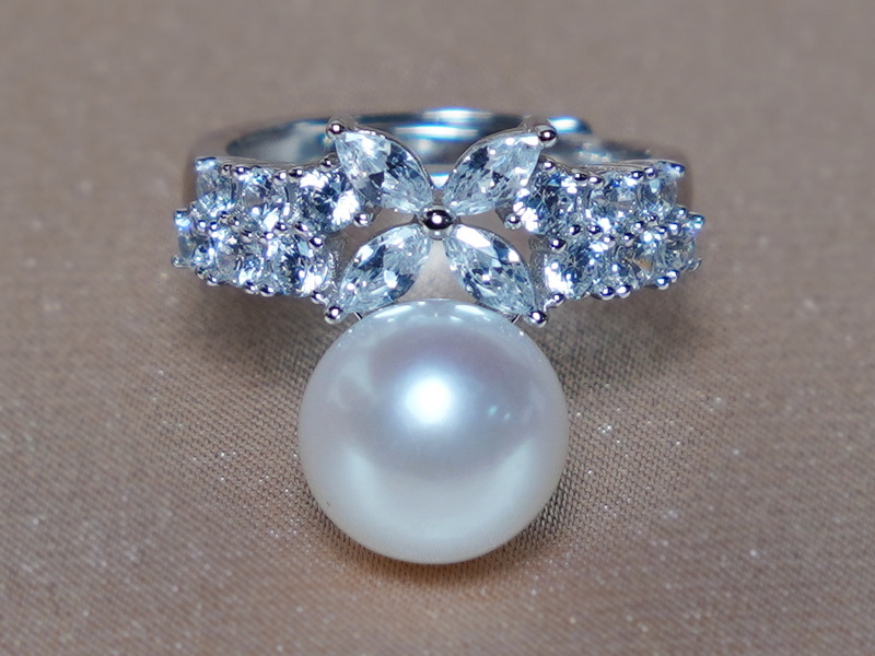 Perla s veľkosťou približne 10,5 mm a povrchovou kvalitou AAA má sploštený tvar (button), hladký povrch a vysoký prirodzený lesk. Strieborné kovanie s hmotnosťou 4,3 g je kombinované so zirkónmi a upravené rhódiom, takže šperk nečerná a dlhodobo si zachováva vzhľad, podobne ako biele zlato.