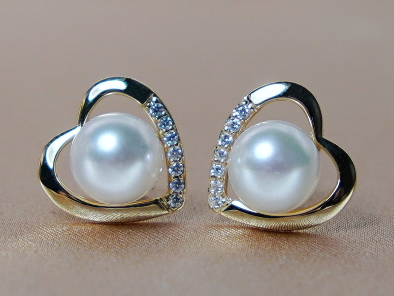 Zlaté napichovacie náušnice s morskou perlou WW013YE-A v tvare srdiečka zo setu šperkov WW013YS-A sú kombináciou kovania zo zlata, zirkónov a pravých japonských morských akoya perál najvyššej kvality AAA. Akoya perly majú okrúhly tvar, hladký povrch a veľmi vysoký lesk. Veľkosť perly môžete zvoliť od 6 - 7 mm. Na fotografii sú perly veľkosti 6,5 mm. Kovania náušníc sú zo žltého zlata rýdzosti 585/1000 (14kt.) a do každého z páru náušníc je vsadených 7 zirkónov. Veľkosť srdiečka je cca 11 x 11 mm a celková hmotnosť zlata páru náušníc je cca 1,25 gramu. Tento jemný dizajn je vhodným doplnkom nielen pre dámy, ale aj mladšie slečny. Pravé morské akoya perly robia z týchto decentných perlových náušníc vhodných na každodenné nosenie výnimočný a hodnotný šperk vo vašej šperkovnici. Perlové náušnice je možné pre doladenie celkového vzhľadu kombinovať s príveskom WW011YP-A rovnakého prevedenia. Zlaté perlové náušnice v tvare srdiečok vám posielame v darčekovej krabičke spolu s certifikátom pravosti a doručené budú zdarma Vami zvoleným spôsobom.