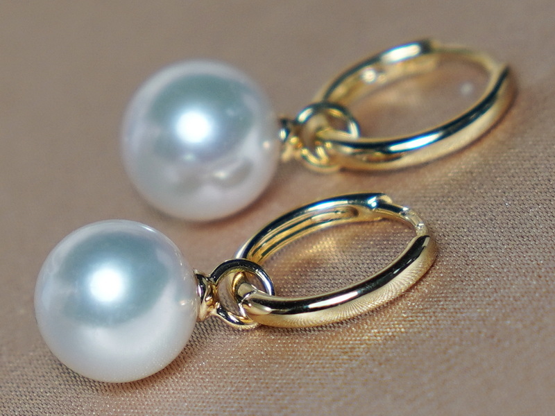 Perly majú okrúhly tvar, hladký povrch a veľmi vysoký lesk. Perly sú uchytené pomocou dostatočne priechodných očiek, ktoré sa jednoducho navliekajú na zlaté náušnicové krúžky s priemerom 12 mm. Veľkosť perál si môžete zvoliť v rozsahu 8,5 – 11 mm (na fotografiách sú perly veľkosti 8,5 mm). Hmotnosť páru zlatých kovaní (krúžky spolu s očkami na perly) je 1,45 g.