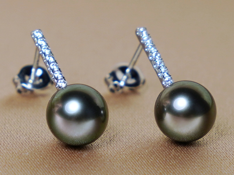 Zlaté náušnice s perlami WW015WE-T vyrobené z pravých tahitských perál a kovaní z bieleho zlata rýdzosti 585/1000 (14 kt.). Perly najvyššej kvality AAA majú okrúhly tvar, hladký povrch a veľmi vysoký lesk. Kovania náušníc sú kombinované každá so 7 ks zirkónov. Hmotnosť páru zlatých kovaní bez perličiek je 0,70 gramu. Veľkosť perál môžete zvoliť od 8 do 9 mm. Dĺžka zvislej časti kovania nad perlou je 10 mm a celková dĺžka s perlou od 16 do 19 mm (podľa veľkosti zvolených perál). Na fotografii sú tahitské perly veľkosti 8 mm. Na požiadanie k zlatým náušniciam s perlami doporučíme prívesok a prsteň s perlou ako kombináciu do setu šperkov. Zlaté perlové šperky posielame v darčekovom balení spolu s certifikátom pravosti a v rámci Česka a Slovenska máte dopravu zdarma.