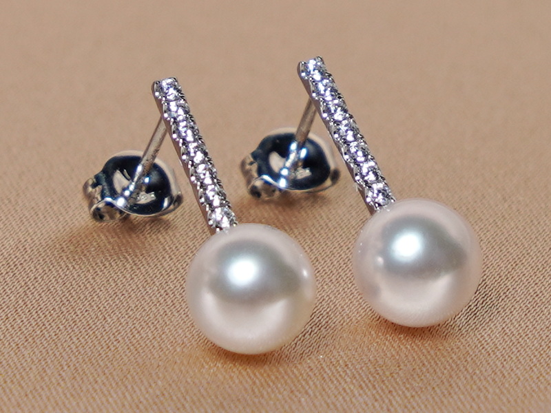 Zlaté náušnice s perlami WW015WE-FW vyrobené z pravých bielych sladkovodných perál a kovaní z bieleho zlata rýdzosti 585/1000 (14 kt.). Perly najvyššej kvality AAA majú okrúhly tvar, hladký povrch a veľmi vysoký lesk. Kovania náušníc sú kombinované každá so 7 ks zirkónov. Hmotnosť páru zlatých kovaní bez perličiek je 0,70 gramu. Veľkosť perál môžete zvoliť od 6 do 9 mm. Dĺžka zvislej časti kovania nad perlou je 10 mm a celková dĺžka s perlou od 16 do 19 mm (podľa veľkosti zvolených perál). Na fotografii sú riečne perly veľkosti 7 mm. Na požiadanie k zlatým náušniciam s perlami doporučíme prívesok a prsteň s perlou ako kombináciu do setu šperkov. Zlaté perlové šperky posielame v darčekovom balení spolu s certifikátom pravosti a v rámci Česka a Slovenska máte dopravu zdarma.