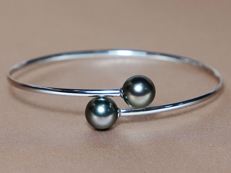 Zlatý perlový náramok WW08WB-TT vyrobený z bieleho zlata rýdzosti 750/1000 (18 kt.) a dvoch pravých tahitských perál. Perly najvyššej kvality AAA majú okrúhly tvar, hladký povrch a veľmi vysoký lesk. Veľkosti perál môžete zvoliť 8 mm alebo 8,5 mm. Na fotografii sú perly veľkosti 8,5 mm. Pre väčšie perly odporúčame mohutnejšiu konštrukciu náramku z našej ponuky.